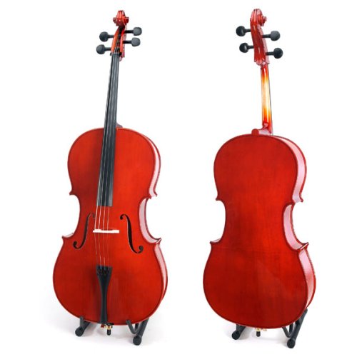 This beautiful cello is ideal for beginning students. It features a crack-proof spruce top, maple back, neck and sides. It has a beautiful high-luster varnish finish. The fingerboard, pegs, and fittings are made of rosewood, and the tailpiece is made of alloy with 4 built-in fine tuners. This outfit also includes a featherweight hardshell case with adjustable backpack straps, cello stand, brazilwood bow with rosewood frog and unbleached genuine Mongolian horsehair, extra set of cello strings, high quality rosin cake. Please note that bridge will not be setup before shipment to avoid damage to the cello body during transit. We are sorry that Cellos cannot be shipped to PO Boxes, APO/FPO address, PR, AK or HI.